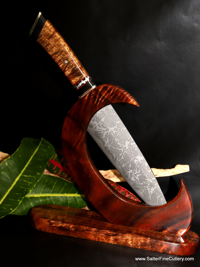 Included with the knife is a handcrafted premium koa Salter hook stand for display. Also includes a certificate of authenticity.